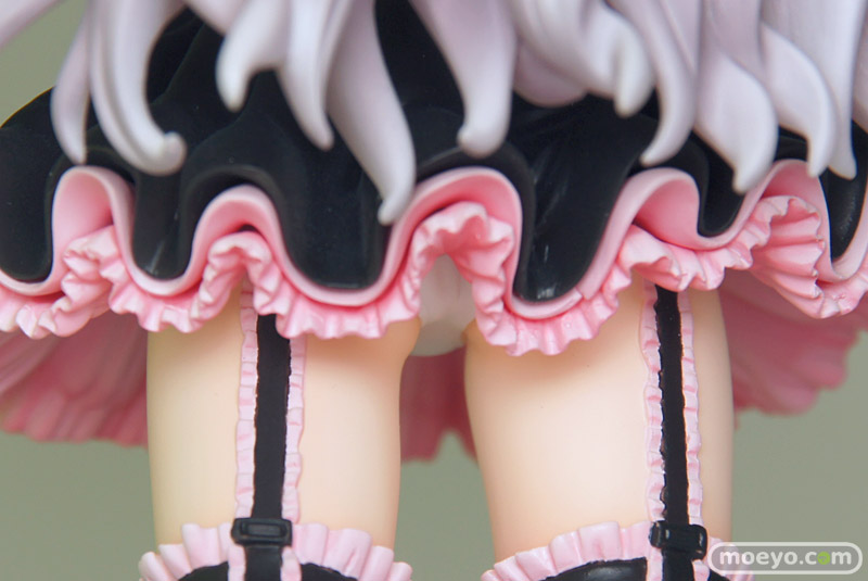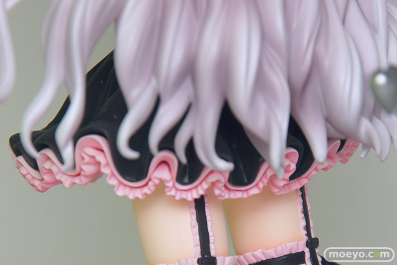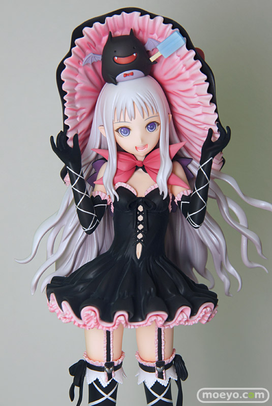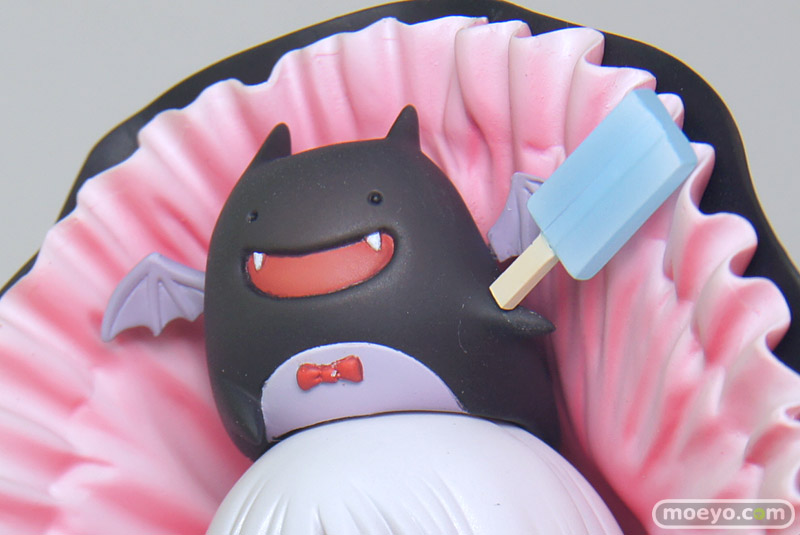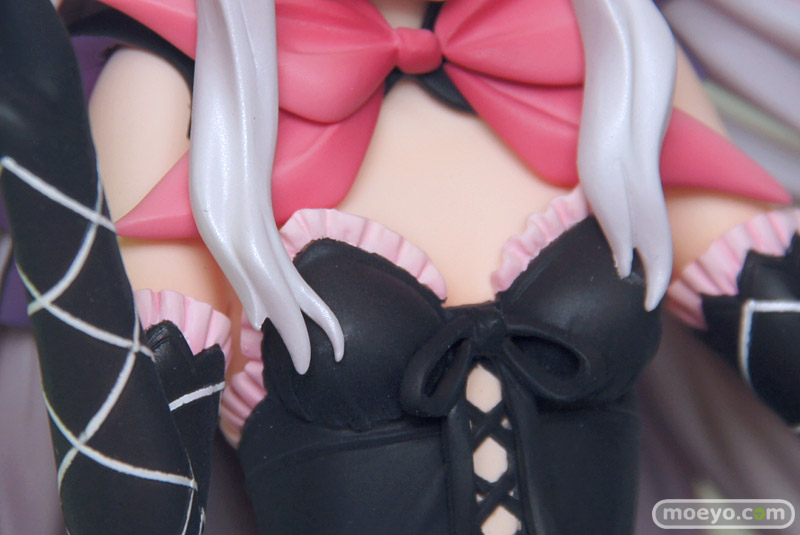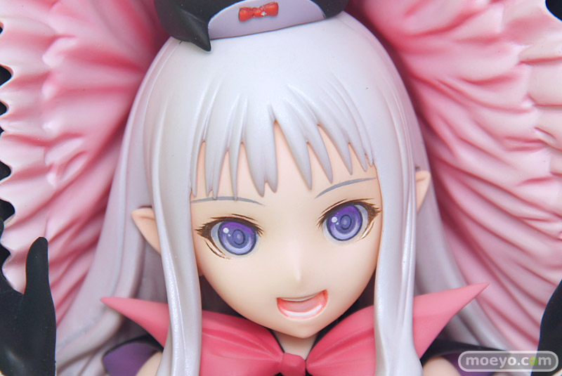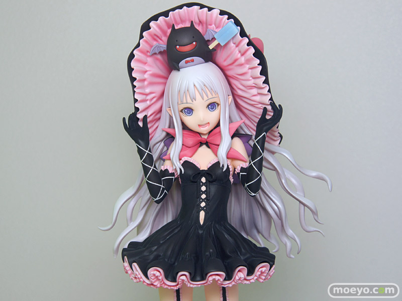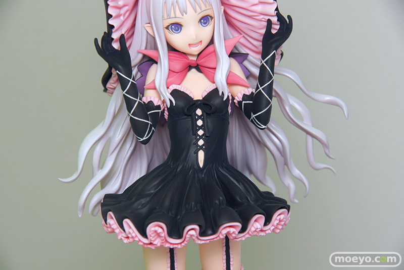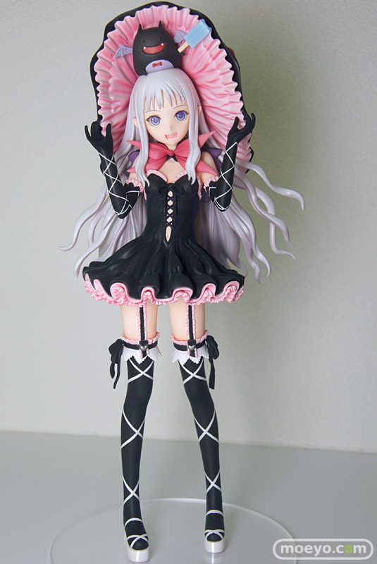立体的な情報量が数多く盛り込まれたピンクのフリフリも可愛らしい黒ドレス、大きなマジカルハット、愛らしくデレた表情や髪の流れ、頭にちょこんと乗った使い魔のソルベエのユルくてカワイイ姿などがイラストそのままに再現され、おとなしいポーズでありながらも、存在感あふれる造形になっています。