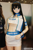 担当の方によると、ペーパームーンRはラジコンカーのスポンサーをしているとの事で、国内外の大会でレースクイーンが実際に着用する衣装と同じものだそうです。ブース横には入賞トロフィーも。