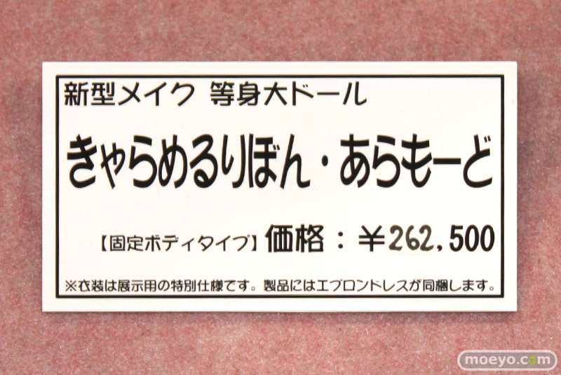■ 商品名:「きゃらめるりぼん・あらもーど」 ■ 仕様:等身大ドール【可動/固定ボディタイプ】 ウィッグ:黒髪ロングストレート(74cm) ヘッド:新型メイク&新型ヘッド「あらもーど」 衣装:オリジナルメイドエプロンドレスセット 【可動ボディタイプ】 等身の高い可動タイプボディに合わす事が可能 【固定ボディタイプ】 身長:約170cm(ヒール含む)実寸164cm トップバスト:85/アンダーバスト:61/W:55/H:88 靴:24cm ブラジャーカップ:E65 ■ 価格:可動ボディ 税込367,500円/固定ボディ 税込262,500円 ■ 発売:2011年8月27日(発売中) ■ 完全受注生産 ■ ※台座は別売りとなります |