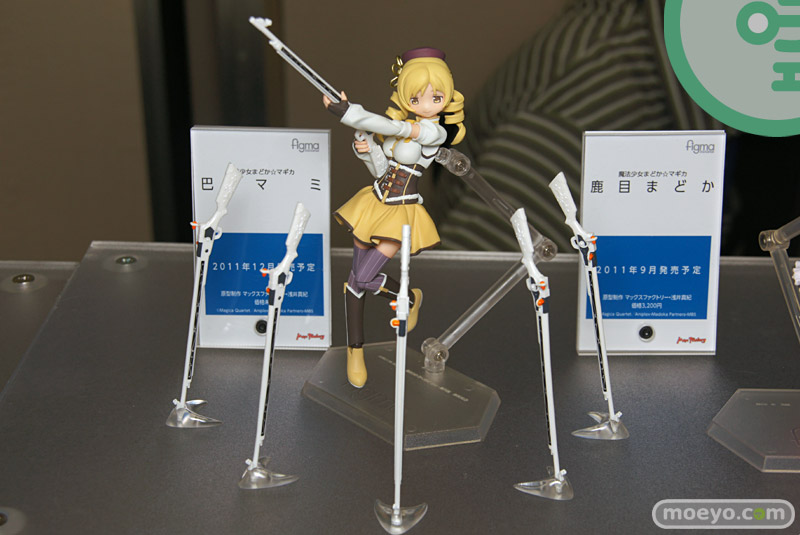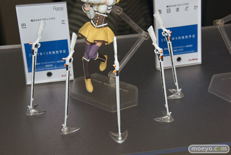 「2011夏 ホビーメーカー合同商品展示会」の会場で、本日9月8日より予約開始した、マックスファクトリー「figma 魔法少女まどか☆マギカ 巴マミ」の彩色サンプルが展示。表情3種に「マスケット銃」が6本付属した充実のセット内容です。