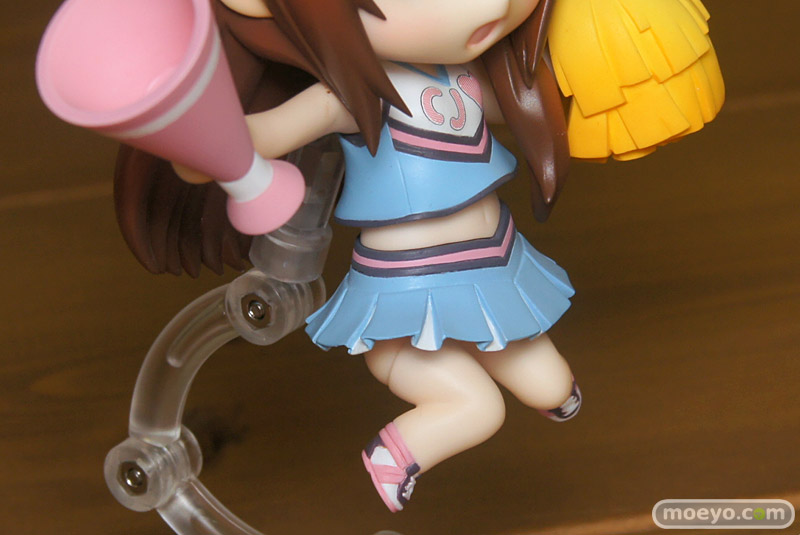 ポンポンやメガホン、応援旗といったオプションパーツのほか、紅莉栖には恥じらいつつも力強く激励してくれる姿を演出できる「励まし顔」と「困り顔」をご用意。まゆりにはマイペースで温かく応援する姿を演出できる「応援顔」と「(´・ω・`)顔」をお付けしました。チアガールらしく二人で連携したポージングも可能ですので、様々なシチュエーションをお楽しみ下さい。