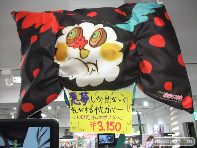 コトブキヤ秋葉原館1Fでは、腕部分にも枕が入り、抱かれて眠ることが出来るアオシマ「すーぱーそに子に抱かれて枕」に「今宵の安眠、約束します!」のPOPがついていました。それとは別に「悪夢しか見ない気がする枕カバー」も販売。