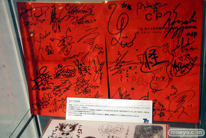 9月25日までGOOD SMILE cafeで開催中の「TYPE-MOON cafe for Carnival Phantasm」にお邪魔してきました。店内はタペストリーやPOPで彩られ、タイプムーン10周年記念の色紙なども展示。交流ノートには武内氏直筆のイラストも。