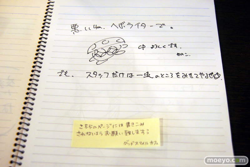 店内に置かれた交流ノートの最初のほうには、奈須きのこ氏と武内崇氏の直筆イラストも!