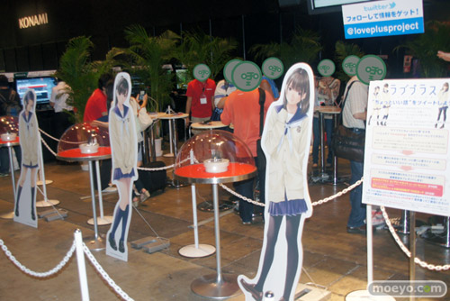 9月15~18日 幕張メッセで開催の「TOKYO GAME SHOW 2011」KONAMIブースで、N3DS「NEW LOVEPLUS」のKONAMIスタイル限定「特別仕様N3DS本体」3種の実機サンプルが展示。鏡面処理でギンギラギンにさりげなくない。