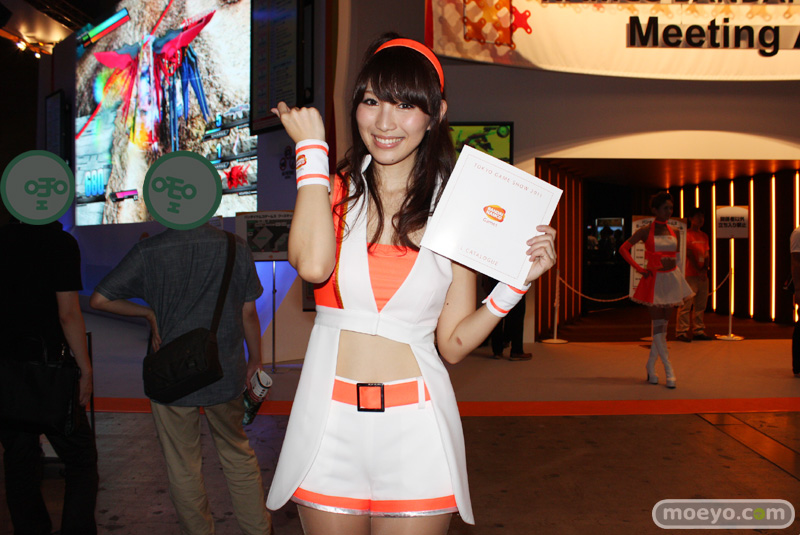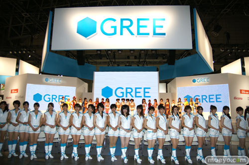 2011年9月15~18日 幕張メッセで開催される「TOKYO GAME SHOW 2011」。会場を彩る、大勢のコンパニオンさんを速報でお届け。画像は、ソーシャルゲームを配信する「GREE」ブース。今年も美女の泉が4日間沸き出でます!