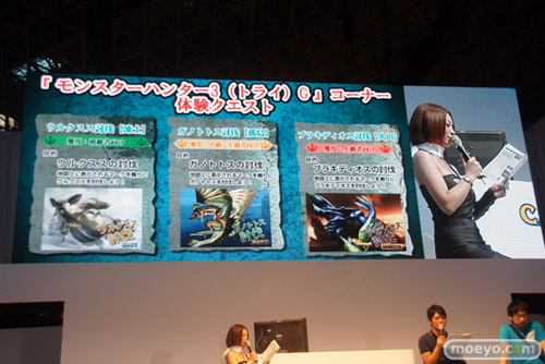 「TOKYO GAME SHOW 2011」のカプコンブースステージで、15日にN3DS「Monster Hunter3(try)G」の実機でのゲームプレゼンが行われました。藤岡Dの実機プレゼンやステージで公開された情報などをお伝えします。