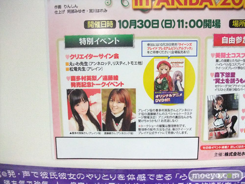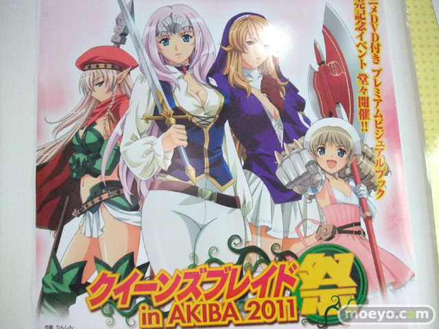 10月29日に発売予定の「アニメDVD付き クイーンズブレイド プレミアムビジュアルブック」の発売を記念して「クイーンズブレイド祭 in AKIBA 2011」が10月30日に秋葉原 UDX 4Fで開催されるようで、K-BOOKSに告知ポスターが掲示開始。