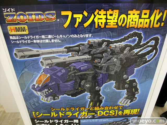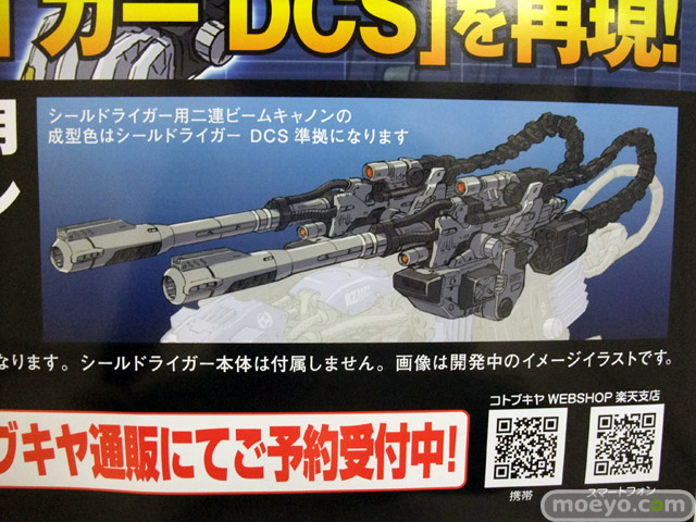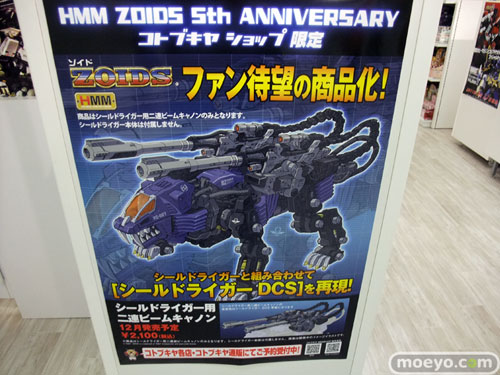 コトブキヤ秋葉原館にて、シールドライガー DCSを再現できる、コトブキヤショップ限定「ゾイド HMM CUSTOMIZE PARTS 023 二連ビームキャノン(シールドライガー用)」の予約が開始。告知ポスターが掲示されました。