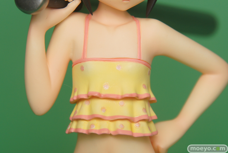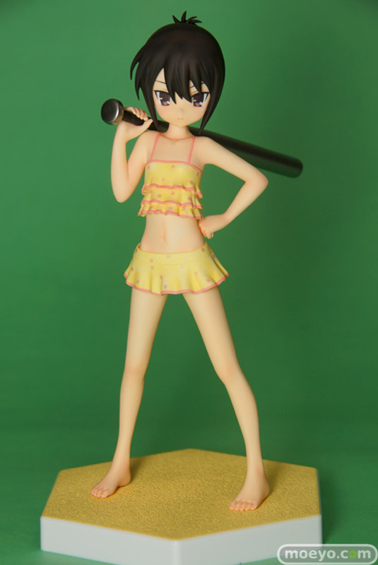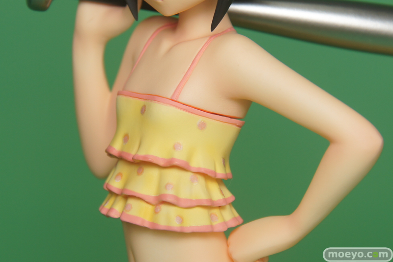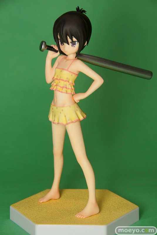 ウェーブ「BEACH QUEENS Aチャンネル トオル」のサンプルレビューです。黄色いフリルの水玉水着がとても可愛らしい反面、手にもった金属バットの凶悪さが。このギャップがまさにトオル。原型は、HOKUSOH氏が担当されています。