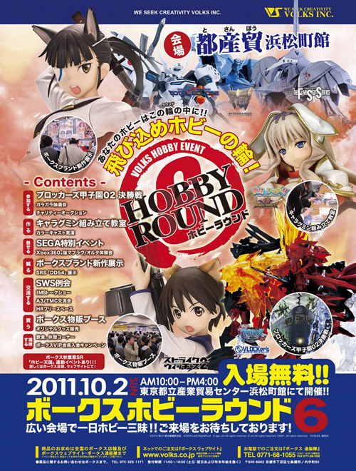 ■ イベント名:ホビーラウンド6 ■ 開催日時:2011年10月2日(日)10:00~16:00 ■ 開催場所:東京都立産業貿易センター浜松町館5F |