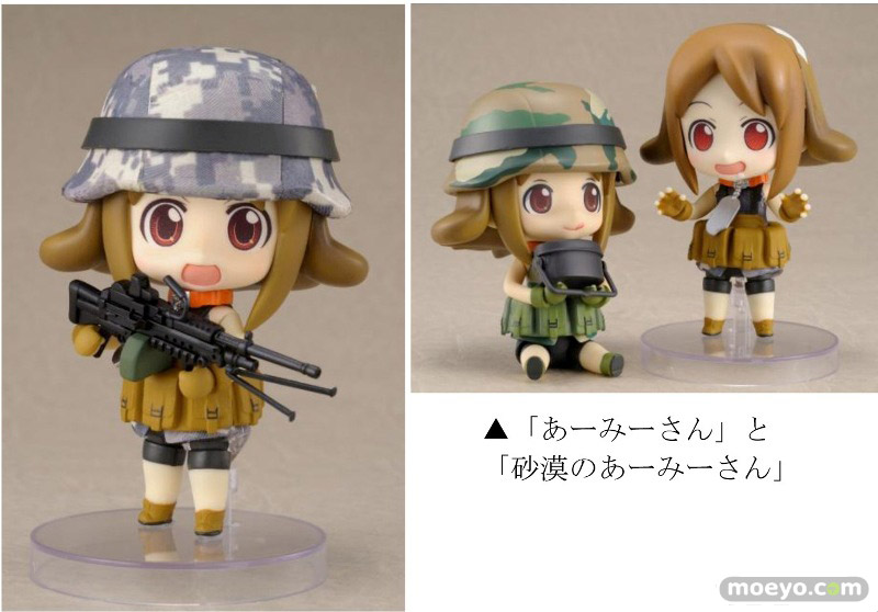 ■ 商品名:「とれたて!ほびーちゃんねる限定「ねんどろいど 砂漠のあーみーさん」」 ■ 発売元:ホビージャパン ■ 仕様:彩色済みPVCモデル ■ サイズ:全高約100mm ■ 原型制作:M.I.C./めーん/伊東ゆうじ(DTM) ■ 制作協力:ねんどろん ■ 開発・製造:ファット・カンパニー ■ 企画協力:グッドスマイルカンパニー ■ 価格:税込4,200円+送料・手数料別 ■ 受付期間:受付中~2011年10月11日(火) ■ 発送時期:2012年2月予定 ■ 購入方法:「HobbyJAPAN OnlineShop」(http://hobbyjapan-shop.com/)からご購入ください。(無料会員登録が必要となります。) |