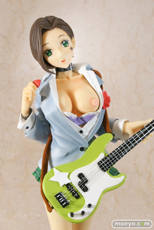 西E田氏が描いた「コミックメガストア2010年5月号」(AA)の表紙イラストより、軽音部の女の子「西園寺沙夜」を立体化。パンクな小物で彩られた制服は 大胆にはだけ、ショッキングピンクのベースに抑えられたミニスカートの下はクリアパーツの透け透け下着。セクシー要素満点ながら、エッジの効いた造形のベースにひきしめられて、クールな印象のフィギュアです。