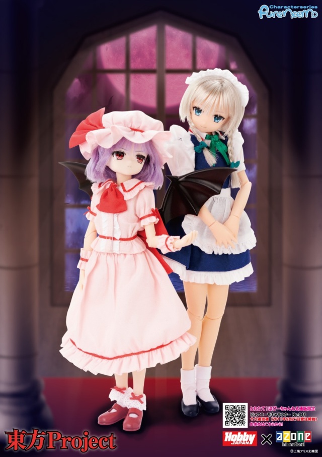 アゾンインターナショナルのドールブランド「ピュアニーモキャラクターシリーズ」に『東方Project』ドールが再び登場します。第2弾のキャラクターは、十六夜咲夜とレミリア・スカーレットという紅魔館コンビ。主のレミリアに仕えるメイド長として紅魔館で住み込みで働ている十六夜咲夜は、「とれたて!ほびーちゃんねる」(http://hobby-channel.net/)通販限定アイテムとなります。