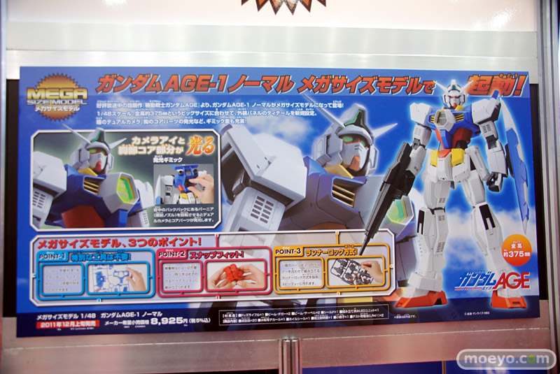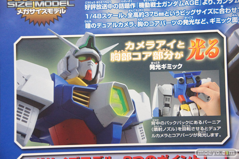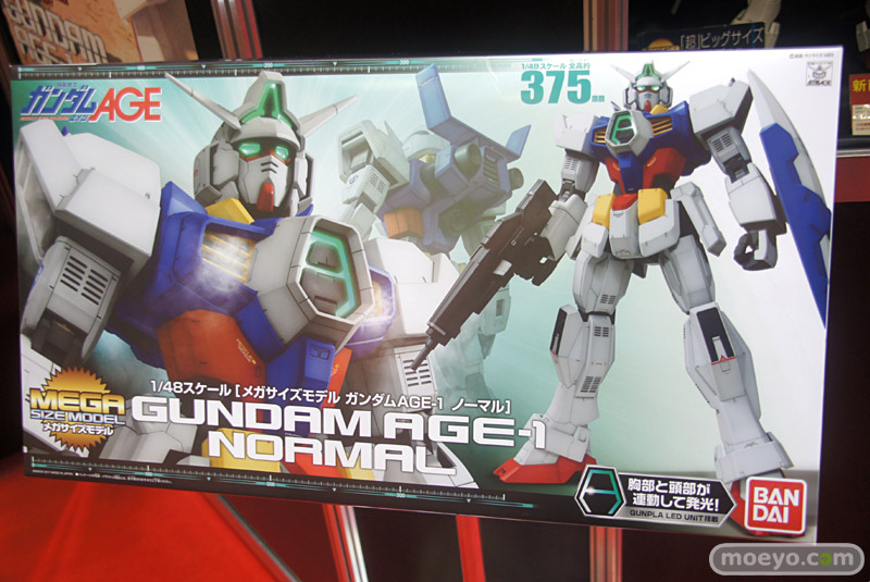 「第51回 全日本模型ホビーショー」のビジネスデーの会場で、バンダイ「MEGA SIZE MODEL 1/48 AGE-1 ガンダムAGE-1 ノーマル」が公開。全高約375mmのビッグサイズ、簡単に組み立てはそのままに、発光ギミックも搭載。