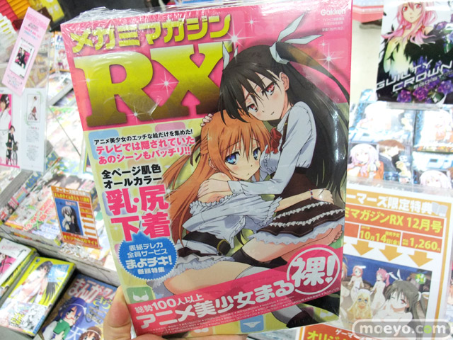 「人気萌えアニメから下着やお尻、おっぱい等のエッチなシーンだけを集めたオールカラー肌色BOOK」という、雑誌「メガミマガジンRX」が、14日に発売。とらのPOPでは「完全ポロリ率は約60%!! むしろ、肌色しかない!!!」等とされていました。