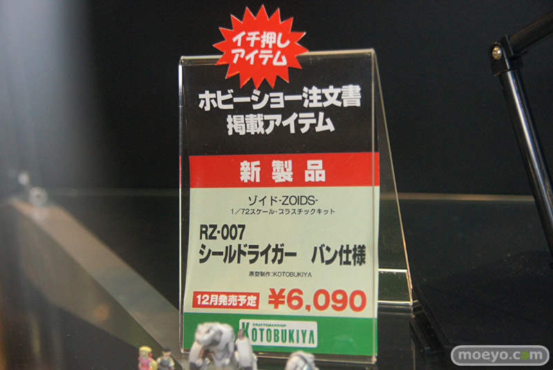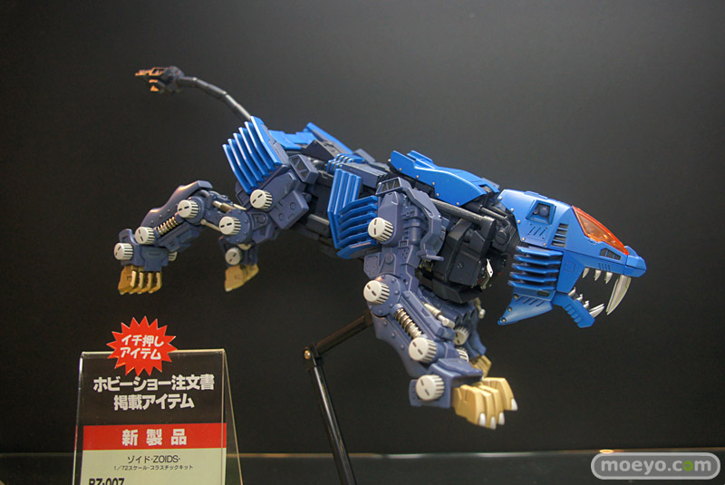 「第51回 全日本模型ホビーショー」の会場で展示されていた、画像の「ライガーゼロ イエーガー」等のゾイド系や「ソウルゲイン」等スパロボ系、「レイキャシール:ホワイティル」等のプラモ新作と「カラー麺タイマー」等グッズ新作展示の様子を。
