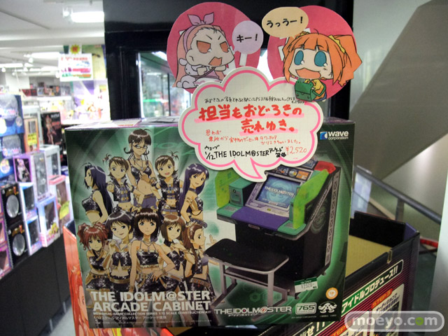アイマスコーナー発足のきっかけは、ウェーブ「THE IDOLM@STER アーケード筐体」(AA)が予想以上に入れているからとか。ゲーセン用のタワーPOPも展示されていました。
