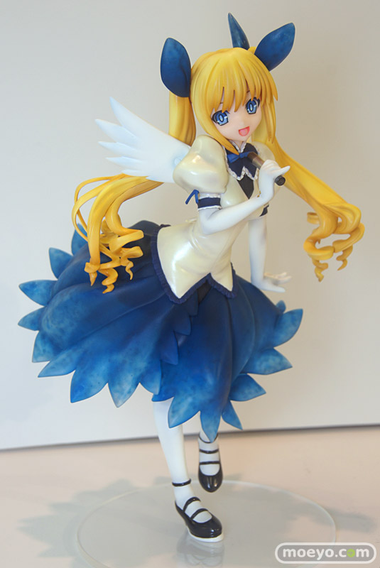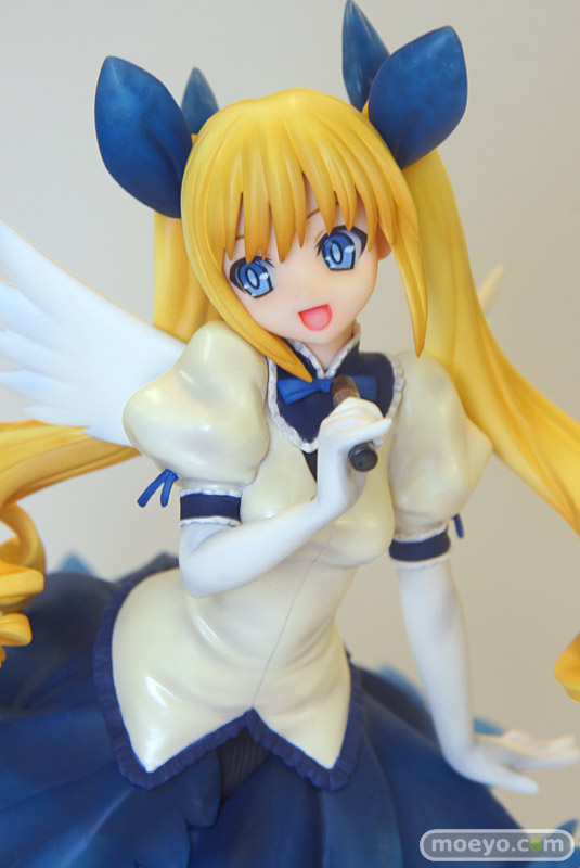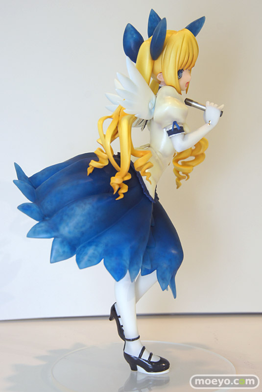 爽やかな青色のリボンとスカートは、キラキラと輝くステージ衣装独特の質感をクリアーパーツにより再現。