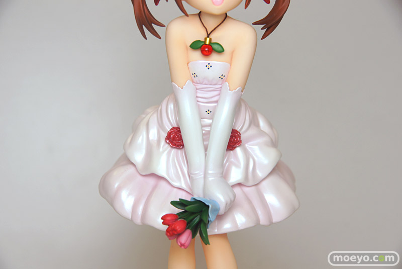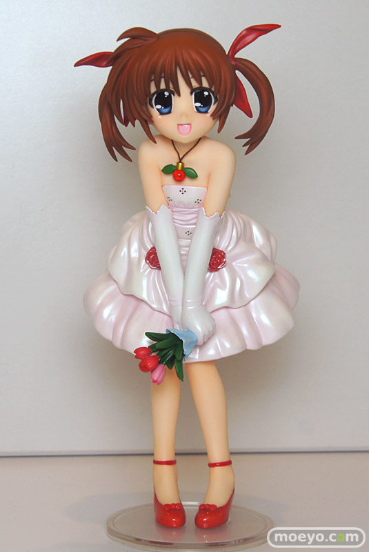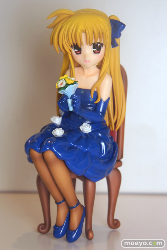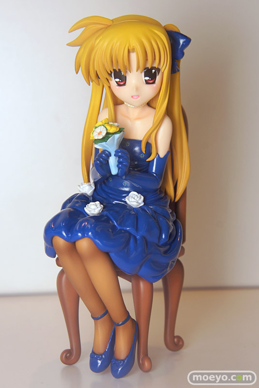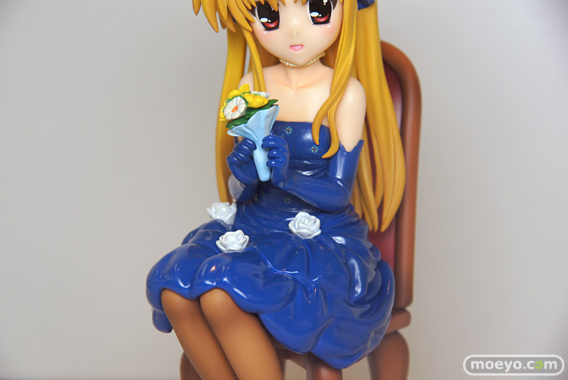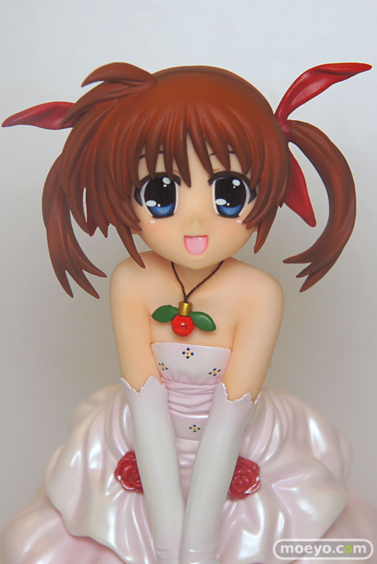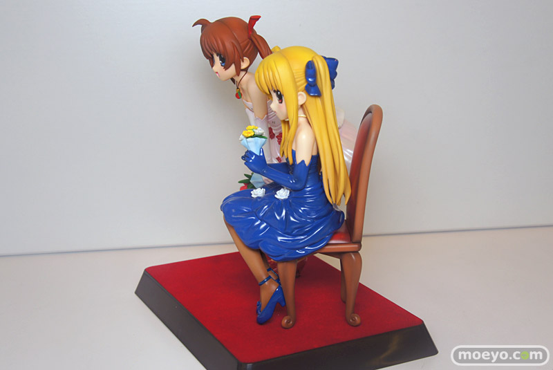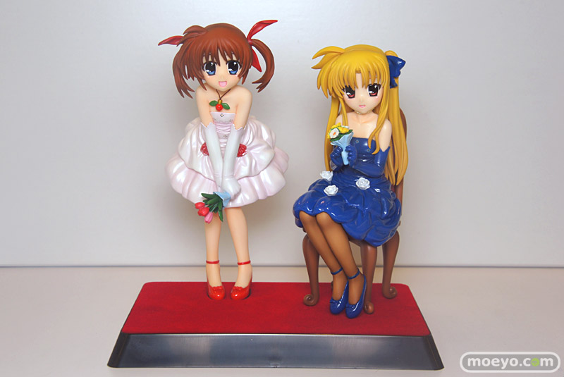 同デザインながらも「なのは」は薄いピンクで明るく可愛らしく、「フェイト」は深い青の落ち着いた雰囲気で描かれているドレス姿は、仕上げとしてパールコートを施して華やかさを演出。