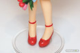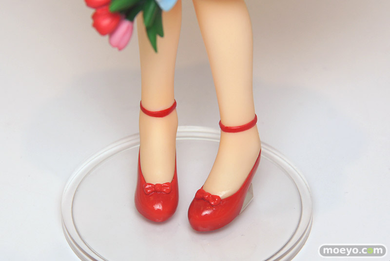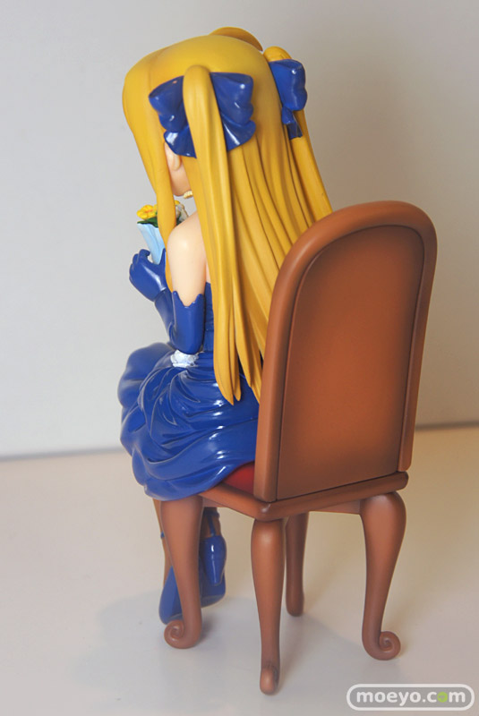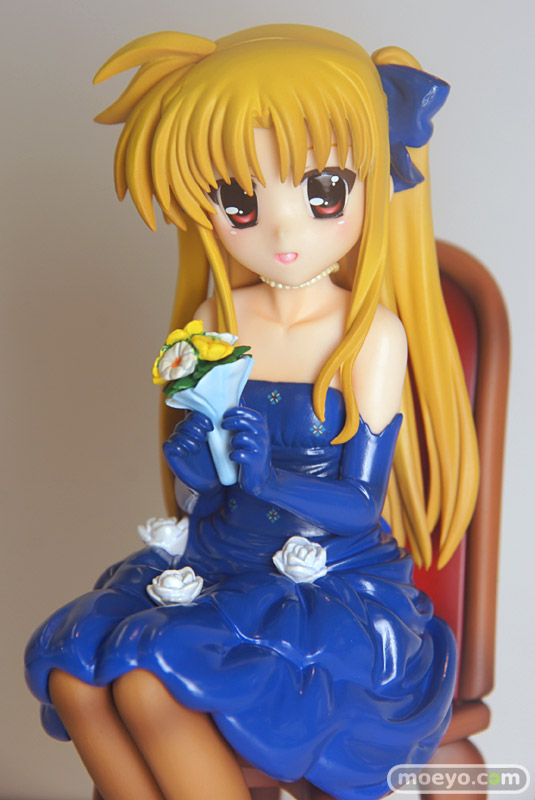 また、なのはの胸元に揺れる「レイジングハート」の本体(球体部分)はクリア成型で再現。二人の両手を飾る花束や、フェイトの腰掛けている椅子もイラストを元にそのまま再現しました。