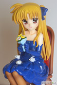 「なのは」の台座は、椅子に座った「フェイト」を配置することによって、二人並んだ元イラストを再現することができる大型でフロッキー加工を施した豪華なものと、「なのは」と「フェイト」をそれぞれ単体でお好みの配置に飾れるように「なのは」の造形サイズに合わせた小型で薄型のものとの二種類が付属します。