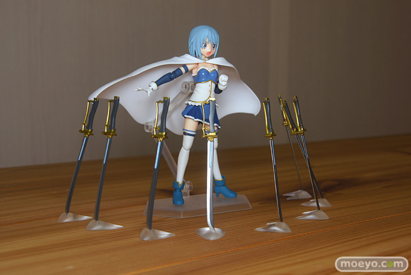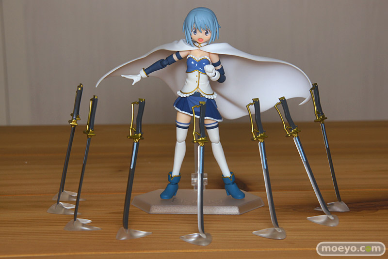 マックスファクトリー「figma 魔法少女まどか☆マギカ 美樹さやか」のサンプルレビューです。「通常顔」「叫び顔」「困り笑顔」の3首の表情が付属。武器として使用するサーベル状の剣も8本付属し、専用の台座を使って展開して飾ることも可能です。