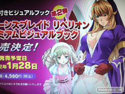 第2弾となる、2012年1月28日発売予定の「クイーンズブレイド リベリオン プレミアムビジュアルブック」(AA)(AM)の告知も。なぜかスカート捲り上げてますw