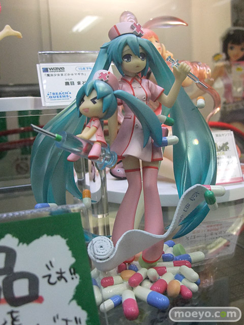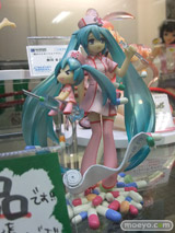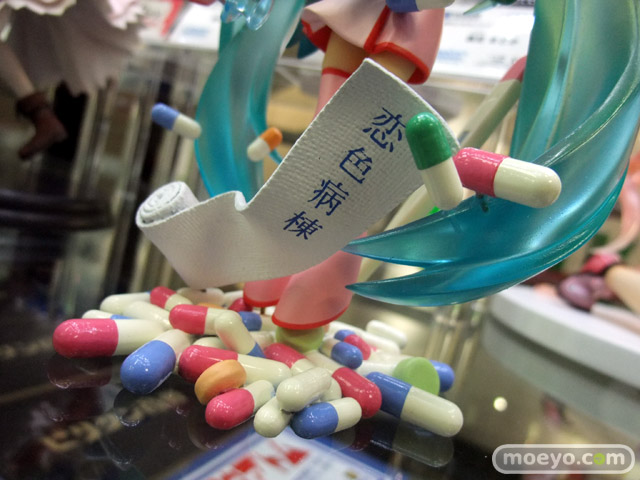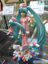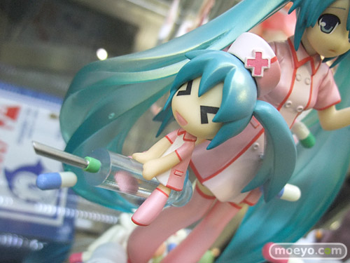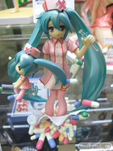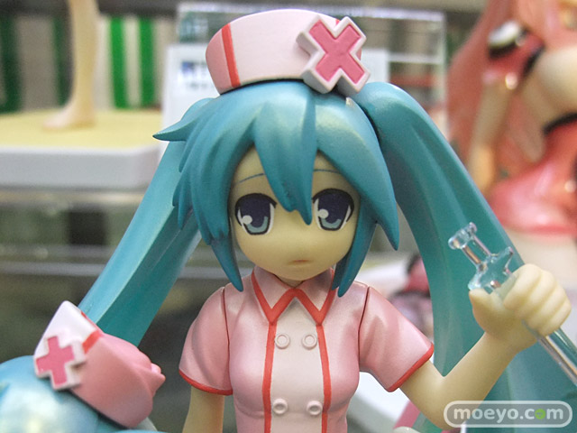 OSTER project(作詞・作曲)・Yおじさん(イラスト)による「恋色病棟」のナースミクを、ディフォルメミクも含め立体化した、ホビーストック「ミクモ ♯01 Original Collection 恋色病棟 初音ミク」の彩色サンプルが、コトブキヤ秋葉原館3Fで展示。