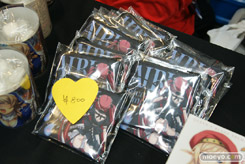 先日発売されたばかりのビジュアルブックや、その他新作アイテム、過去の限定品フィギュアなどが並ぶ物販コーナー。