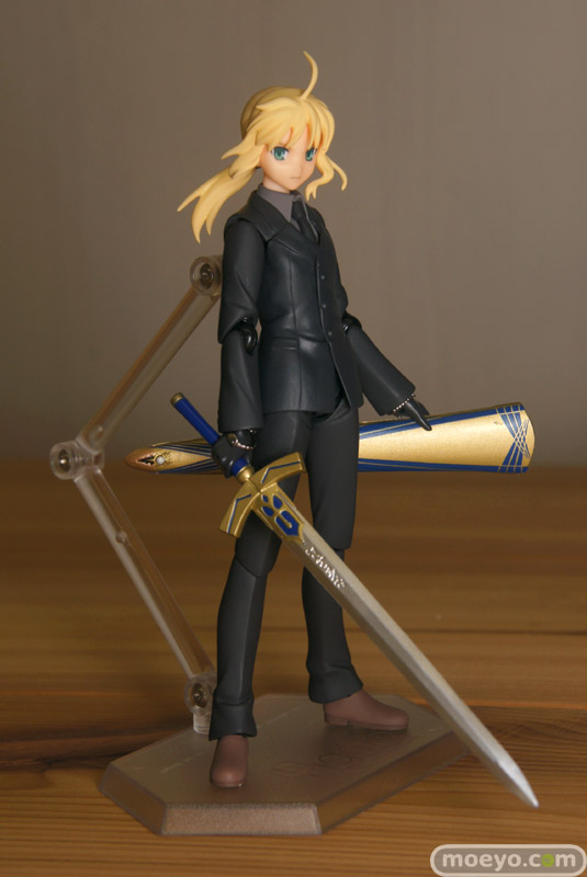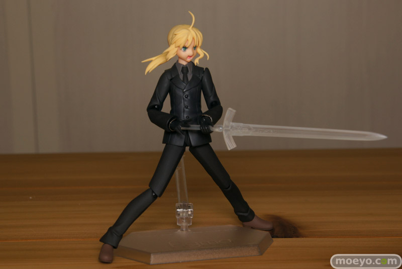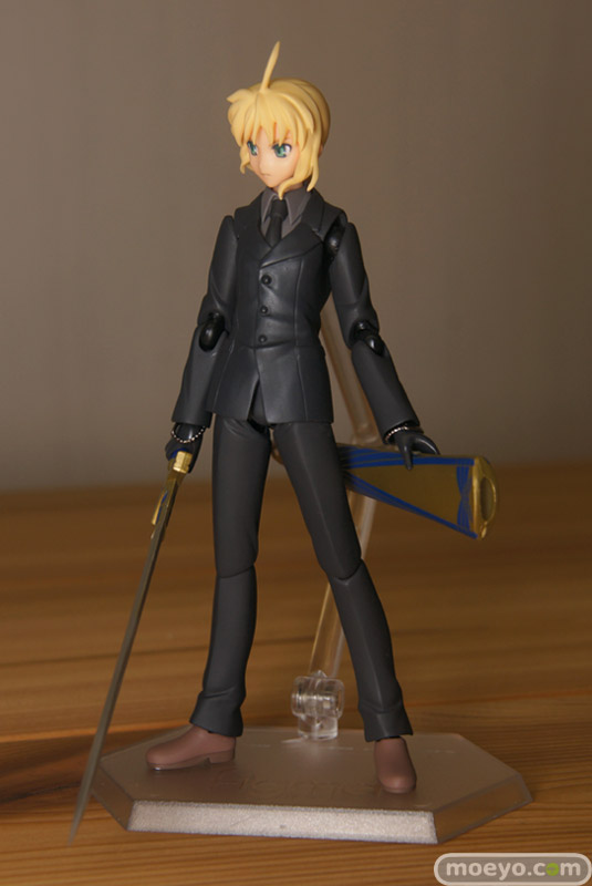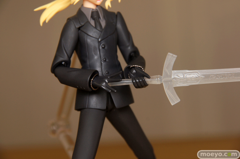 Fate/Zeroの黒スーツ姿のセイバーをfigma化した、マックス「figma Fate/Zero セイバー Zero ver.」のサンプルレビューです。「エクスカリバー」と「アヴァロン」のほか、クリアパーツで再現された「風王結界」発動の「エクスカリバー」も付属。