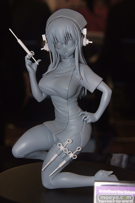 「宮沢模型新作展示会2011秋」の会場で、オーキッドシード「NITRO SUPER SONIC イメージキャラクター すーぱーそに子 ナースver.」の無彩色サンプルが公開。お尻を見せてもらったら、むっちりすぎて透けパン状態でした。