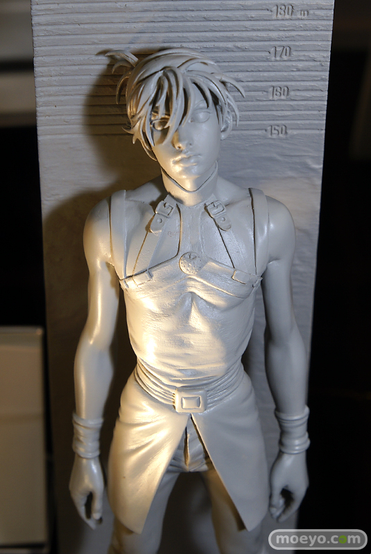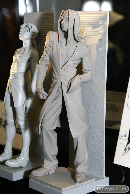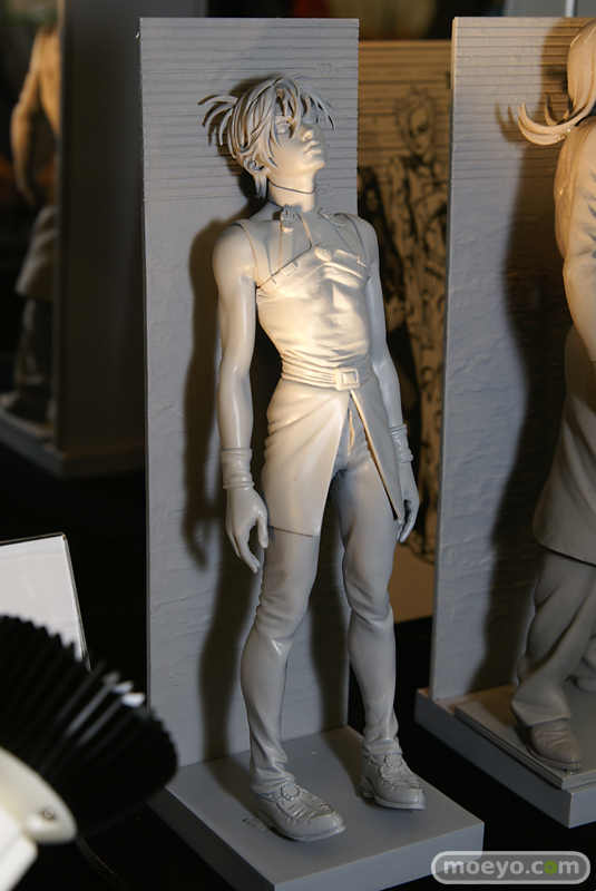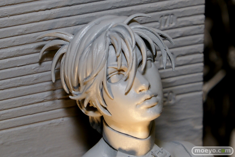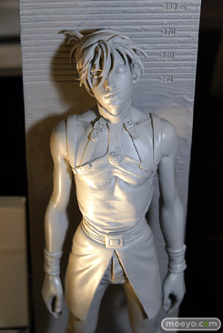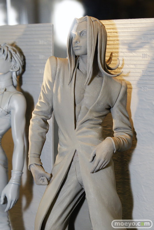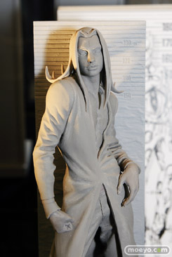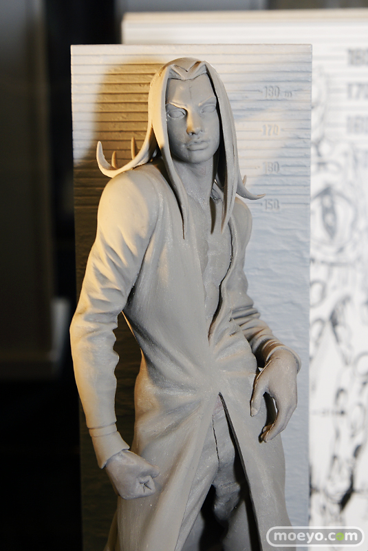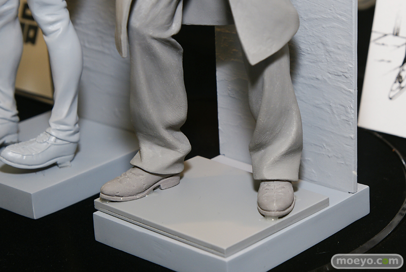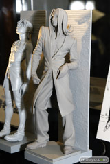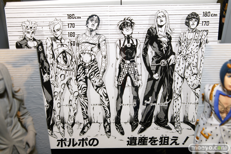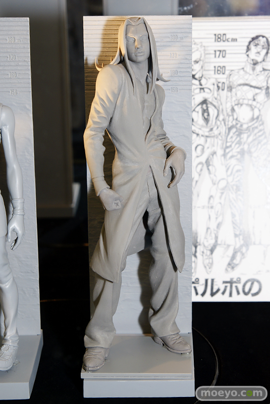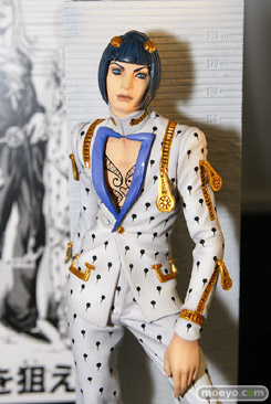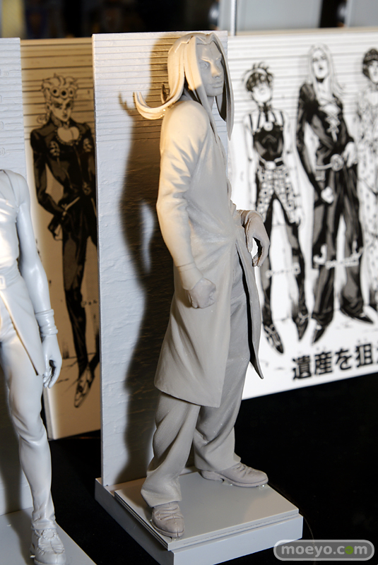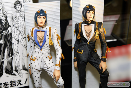 バンプレストプライズ「ジョジョの奇妙な冒険 DXフィギュア Passione ~ブチャラティチーム~」。全員集めると扉絵を再現できる第1弾は、やはり「ブチャラティ」! 続く「アバッキオ」「ナランチャ」の無彩色原型も展示されていました。