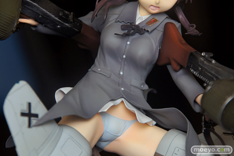 固有魔法「怪力」を使用する彼女らしく、MG42二丁を携えたポーズで立体化。ネウロイとの交戦中を思わせるダイナミックな造形が圧倒的な攻撃力と質実剛健なキャラクター性を演出します。