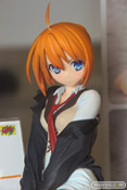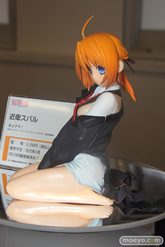 「宮沢模型新作展示会2011秋」の会場で、シーエムズコーポレーション「グッとくるフィギュアコレクション ラ・ボーテ05 近衛スバル」の彩色サンプルが公開。隣に展示してあったパネルには、猫耳コスプレ姿や、下着姿なども掲示されていました。