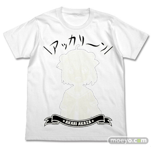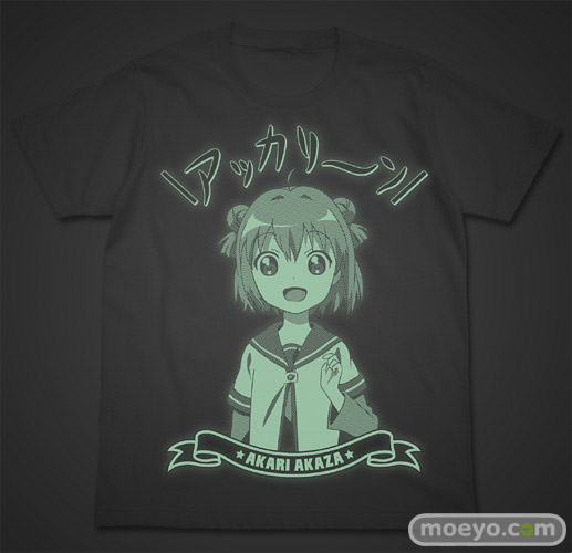 アッカリーンという効果音とあかりのシルエットの点線がプリントされた、あかりの存在感のなさを表現したTシャツ!……と思いきや、暗い所では蓄光インクが光り、あかり本体が浮かび上がるギミックを搭載!! あかりらしさ全開の一枚です!