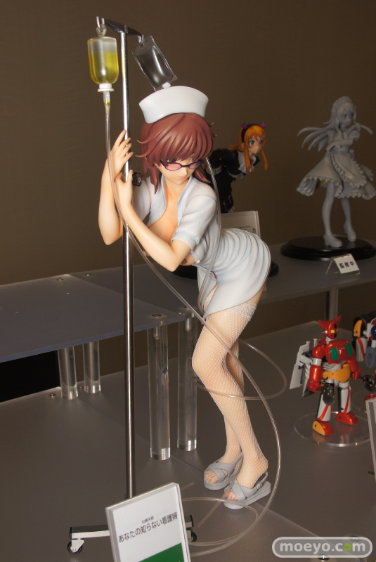 大胆に開いた胸元とお尻を突き出したポーズで、メガネ姿も再現可能な、FREEing「あなたの知らない看護婦~性的病棟24時~ 白鳥天音」の彩色サンプルが、「2011夏 ホビーメーカー合同商品展示会」の会場で公開。良いケツしてます。