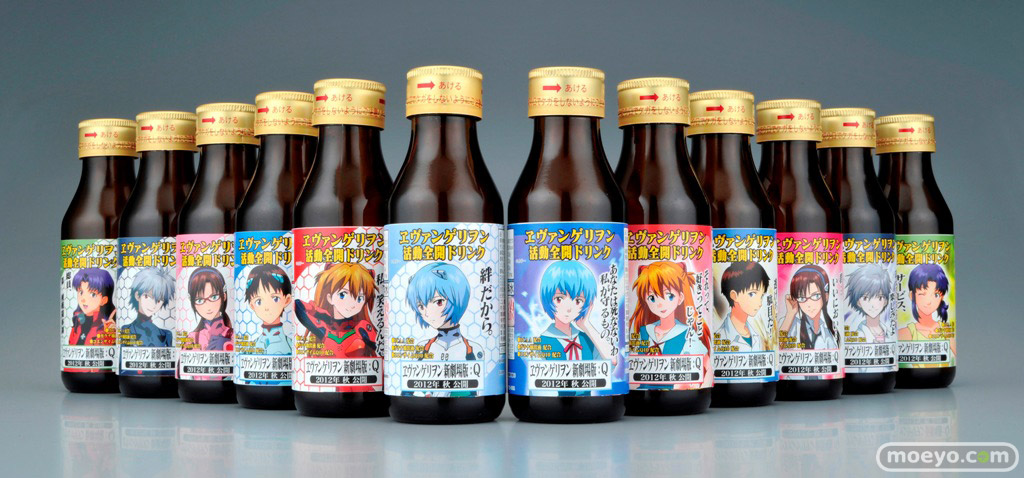 ■ 商品名:「ヱヴァンゲリヲン活動全開ドリンク(清涼飲料水)」 ■ 製造者:金陽製薬株式会社 ■ 商品サイズ:W45×H130×D45mm、重さ 230g ■ 内容量:100ml ■ 原材料名: 砂糖・異性化液糖、L-カルニチン、ガラナ抽出液、イチョウ葉抽出液、緑茶エキス、コエンザイムQ10、酸味料、香料、アスパラギン酸Na、リジン、グリシン、グルタミン酸Na、 保存料(安息香酸Na、パラオキシ安息香酸)、グリセリン、ロイシン、乳化剤、ビタミンB1、イソロイシン、バリン、ヘマトコッカス藻色素、ビタミンB6、ナイアシン、パントテン酸Ca、ビタミンB2、フェニルアラニン、トレオニン、葉酸、ビタミンE、ビタミンB12 ■ 価格:税込210円 ■ 発売:2011年12月14日~ |