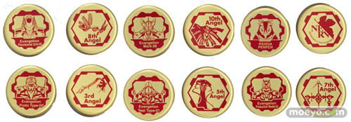 希波・マリ・イラストリアス」「渚カヲル」「葛城ミサト」(各2種、計12種類)で、キャップのデザインは、「エヴァンゲリオン(以下、EVA)零号機」「EVA初号機」「EVA2号機」「EVA仮設5号機」「EVA6号機」「第3の使徒」「第5の使徒」「第7の使徒」「第8の使徒」「第10の使徒」「ペンペン」「ネルフマーク」(各1種、計12種類)です。