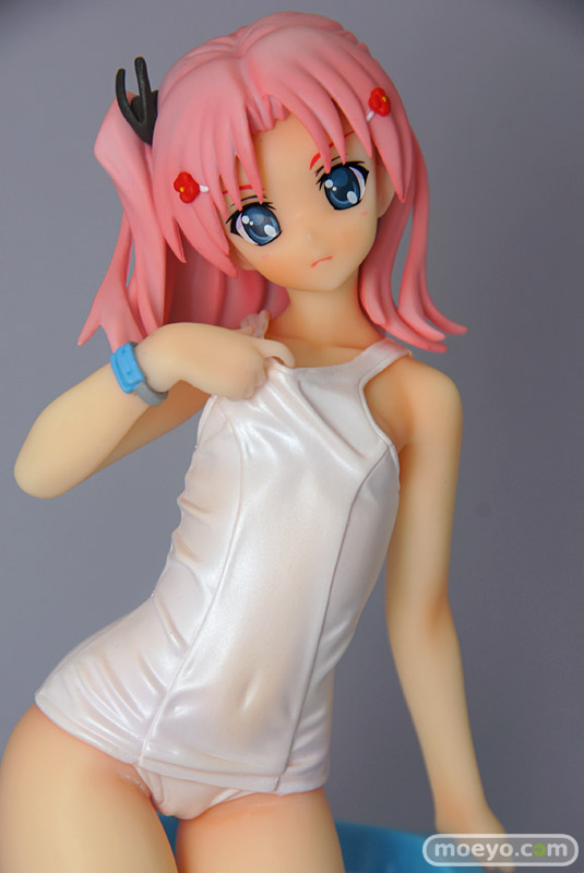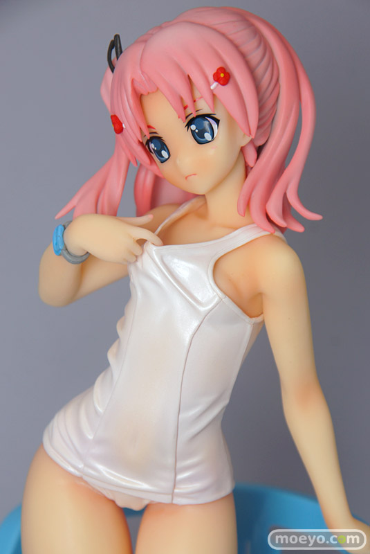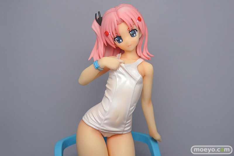 第2弾、「まーりゃん先輩」でも白水着バージョンを同時発売いたします。環の白水着ではテレ顔でしたが、まーりゃん先輩はもちろん「ツン顔」です。ツンツンした表情のまーりゃん先輩ですが、紺色とは違った可愛らしさのある旧スク水の白いカラーに透けた表現で、まーりゃん先輩の魅力を余すところなく引き出した逸品に仕上がりました。