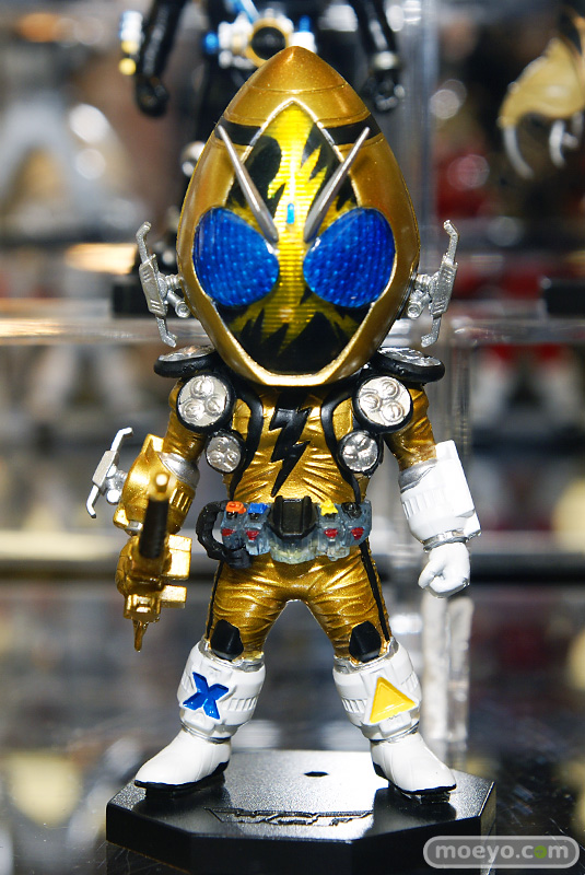 バンプレストのトレーディングフィギュアシリーズ「ワールドコレクタブルフィギュア」。フォーゼの最新フォームが続々追加される傍ら、仮面ライダー1号と愛車サイクロンや、ライダー初の変身ヒロイン 電波人間タックル等、昭和ライダーも充実。