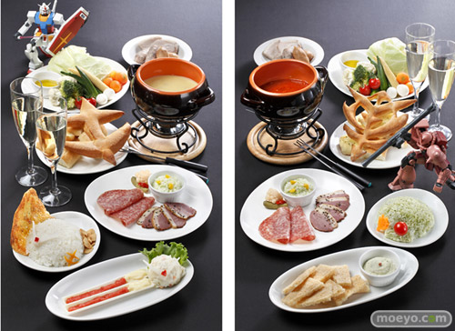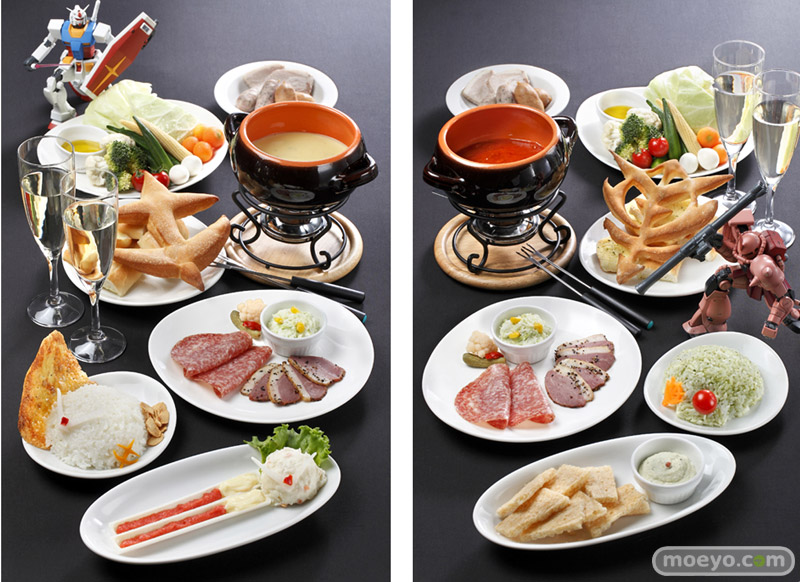 ■ 「冬の寒さを吹き飛ばせ!激突 連邦VSジオン 予約限定 パーティコースメニュー」 ■ 期間:2011年11月22日(火)~2012年1月15日(日) ※予約は、3日前まで受付 (但し、12月31日~1月4日の年末年始の特別営業時は除く) ■ コース料金:各1名様 税込2,500円 ※2名様よりご予約いただけます。 ■ コースメニュー: 【連邦コース】ウェルカムドリンク、連邦フォンデュ(白いクリームフォンデュ、温野菜、肉盛り合わせ)、ビームサーベル・スティック、前菜盛り合わせ、連邦マーク付パン盛り合わせ、大気圏突入ライス ガンダム 【ジオンコース】ウェルカムドリンク、ジオンフォンデュ(赤いトマトフォンデュ、温野菜、肉盛り合わせ)、アコース クラッカーだ!、前菜盛り合わせ、ジオンマーク付パン盛り合わせ、大気圏突入ライス ザク ※下線は、コース料理セットで楽しみいただける限定メニューです。 ※フォンデュ単品は、ご予約以外のお客様もご注文いただけます。 ※ご予約につきましては、詳しくは「GUNDAM Café」ホームページをご覧下さい。 |