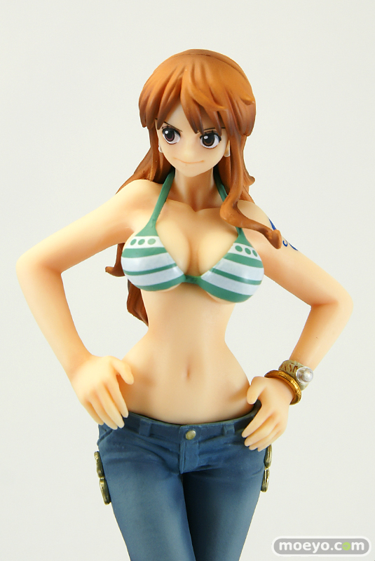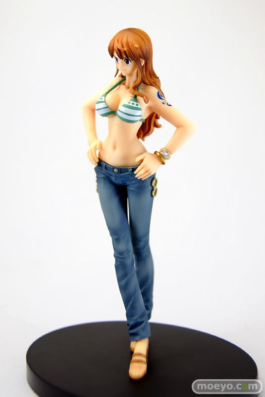 半分出てますけど!!という超ローライズなジーンズに、普段からビキニという大胆な服装にも関わらず、ナミらしくカジュアルな雰囲気。