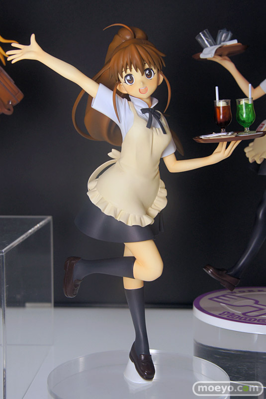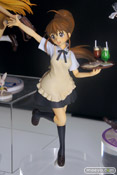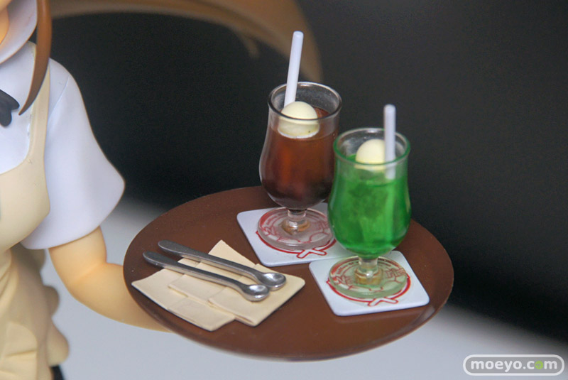 アルター「WORKING!! 種島ぽぷら」の彩色サンプルが、「メガホビEXPO2011Autumn」の会場で公開。働いている最中、呼びかけに元気イッパイに答えている感じのポーズで、見ているこっちも元気になります。トレーの上の小物もすごい出来。