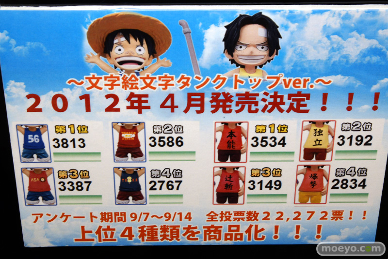 ■ 製品名:「ワンピース ワールドコレクタブルフィギュア ~文字絵文字タンクトップver.~」 ■ サイズ:全高約70mm ■ アソート数:全8種 ■ 登場:2012年4月第3週 |