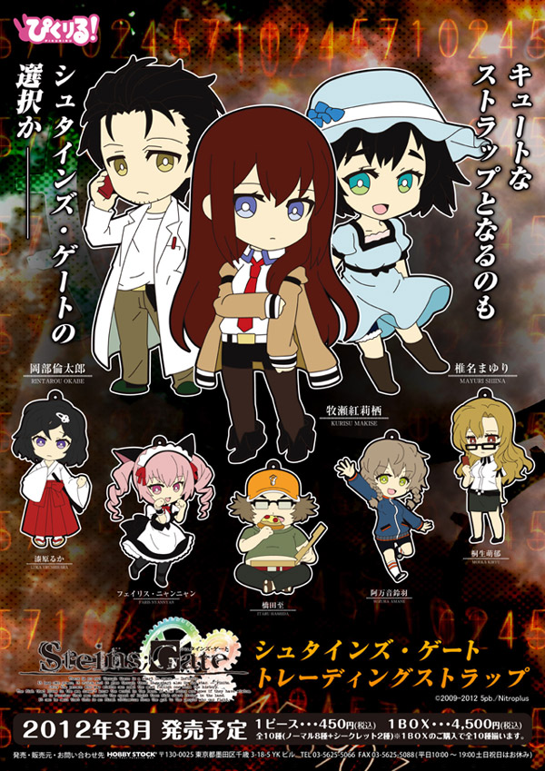 『キュートなストラップとなるのもシュタインズ・ゲートの選択か―』。ゲームもアニメも大人気の「シュタインズ・ゲート」に登場するキャラクターたちが、ラバー素材のかわいいトレーディングストラップになりました!【ホビーストック】