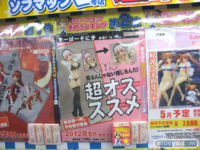 アキバ☆ソフマップ2号店 週間予約ランキングTOP10 (12/5~12/11付)をお伝え。今週も「figma 杏子」が1位でV2達成。2位には初登場のアルファマックス「そに子 水着グラビアver.」が。他、今週はスケールものが多数ランクイン。