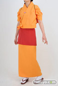 緒花、なこちによく似合う、鮮やかな山吹色の二部式服は、梨地織の生地を使用!