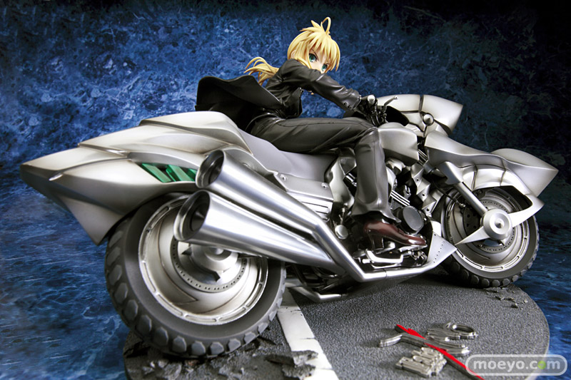 大人気TVアニメアニメ『Fate/Zero』から、衛宮切嗣と契約した剣士のサーヴァント「セイバー」が1/8スケールフィギュアで登場です。小説の挿絵に登場したバイクを駆る姿をベースにしつつ、バイクは車体に鎧を纏わせた「セイバー・モータード・キュイラッシェ」へと強化し、エクスカリバーを片手に激しい闘志をみなぎらせて戦いに身を馳せるセイバーを表現しました。荒々しくも凛とした美しさを残す表情や細部まで丁寧に再現したバイクなど、見所も満載となっていますので、じっくりとご鑑賞下さい。