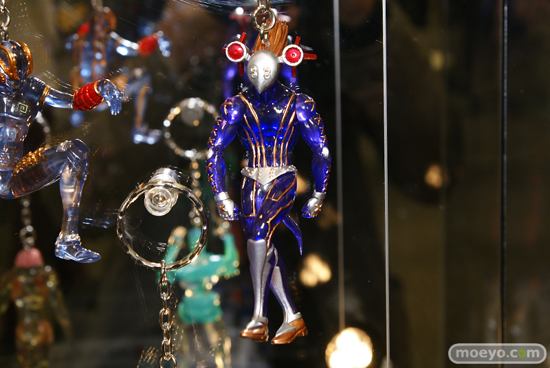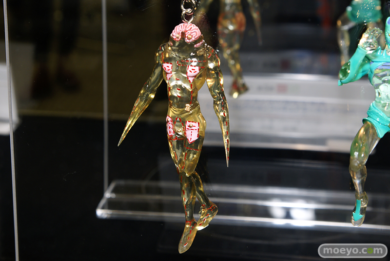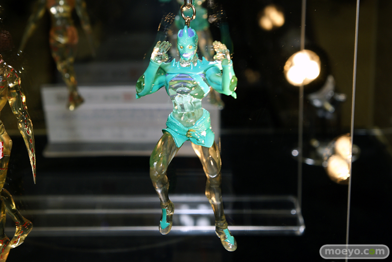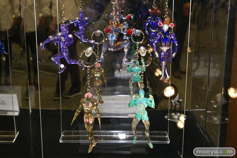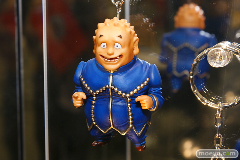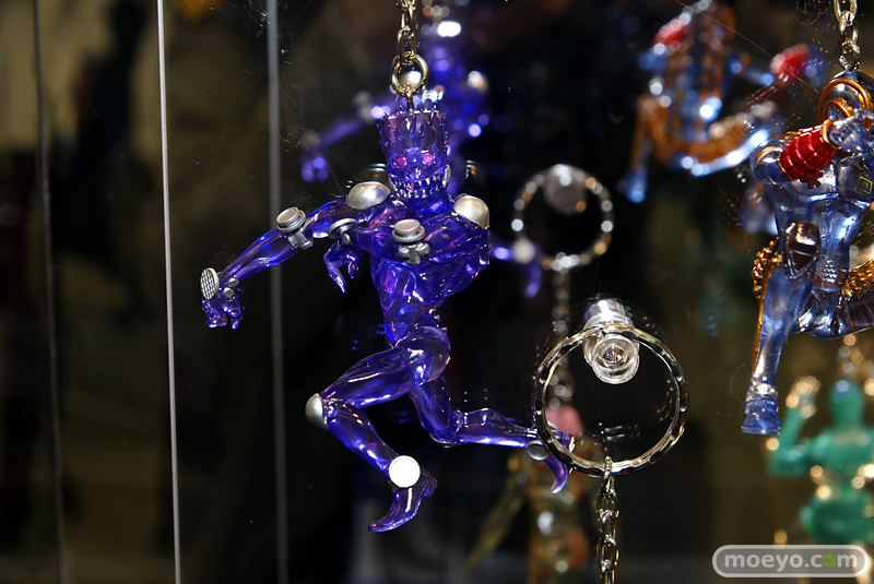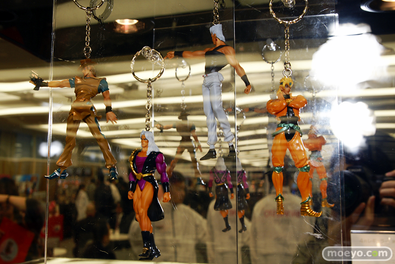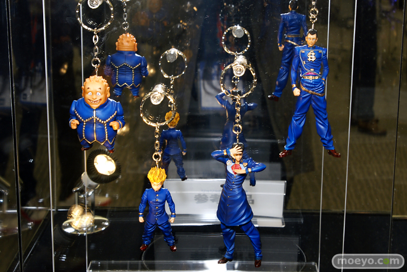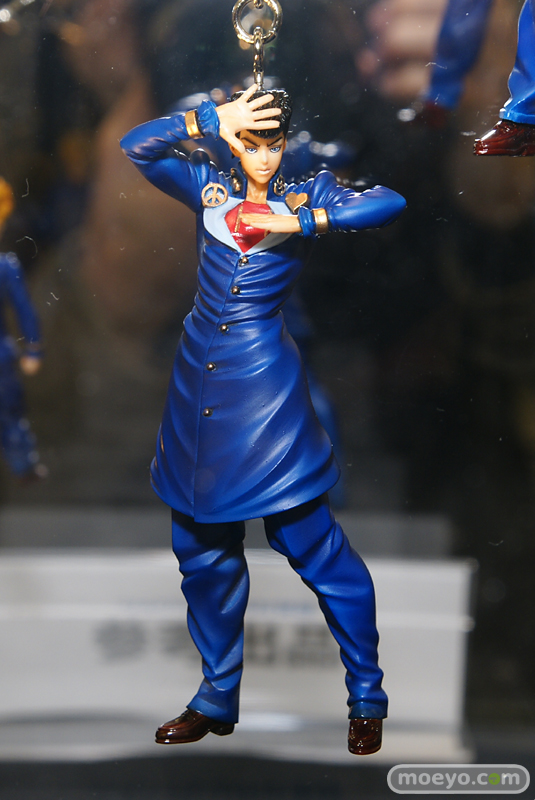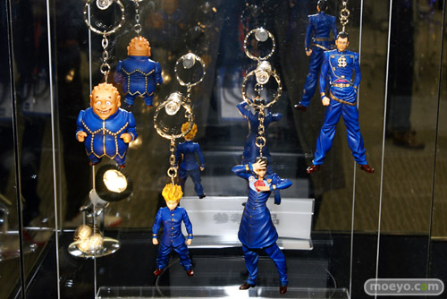 バンプレストプライズの「ジョジョの奇妙な冒険 フィギュアキーホルダー」シリーズ。「コレクション vol.2」「スタンドコレクション vol.13」のサンプルです。他、制服姿の「仗助」「億泰」「康一」「重ちー」も参考出品されていました。
